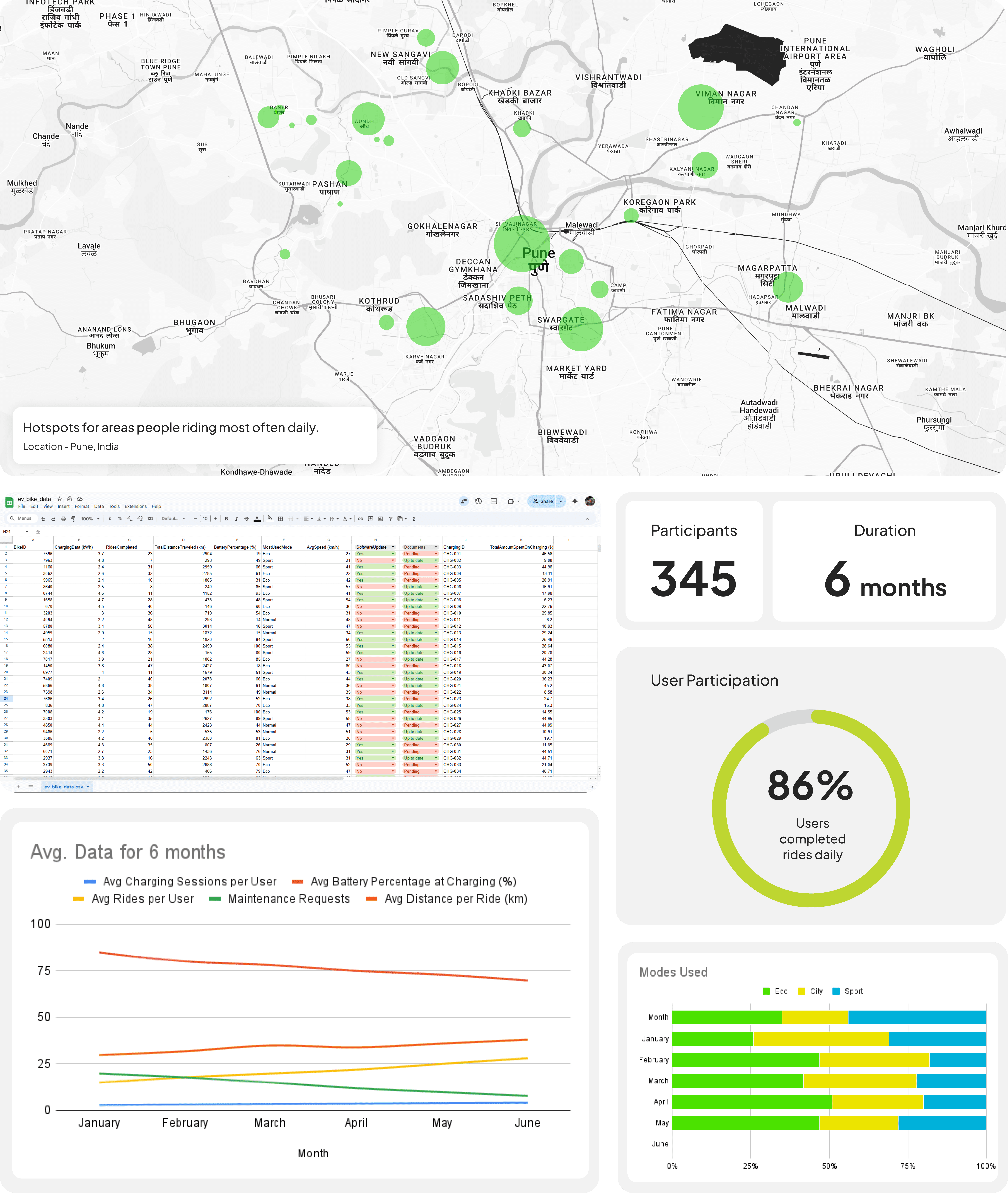 We gathered data from the owners on their demographics, riding patterns, battery consumption efficiency, modes used, traffic conditions and synthesized it to generate insights.